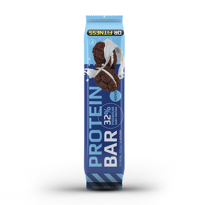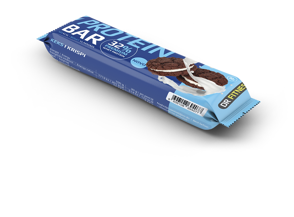 Predstavljamo Vam DrFitness Protein Bar sa neodoljivim ukusom keksa i krispija. Ovaj bar je pažljivo osmišljen da pruži bogatstvo proteina iz mlečnog izolata i Whey protein, idealnih za podršku mišićnom rastu i oporavku. Uživajte u savršenoj kombinaciji tekstura sa dodatkom keksa, uz minimalan sadržaj šećera zahvaljujući Sukralozi i kakao prelivu. DrFitness Protein Bar sa keksom i krispijem je savršen izbor za brzu i ukusnu užinu koja vas drži sitim i energizovanim.