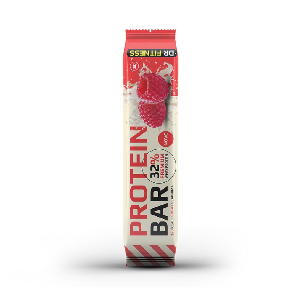 Otkrijte DrFitness Protein Bar sa osvežavajućim ukusom maline. Sa izolatima mlečnog proteina i Whey protein kao ključnim sastojcima, ovaj bar efikasno hrani vaše mišiće i obezbeđuje neophodnu snagu. Uživajte u autentičnom voćnom ukusu zahvaljujući liofilizovanoj malini i aromi maline , uz minimalni sadržaj šećera postignut Sukralozom. Uz dodatak kakao preliva i hrskavih krispija, ovaj bar je savršen kao praktična užina koja će vas osvežiti i održati sitim tokom celog dana.